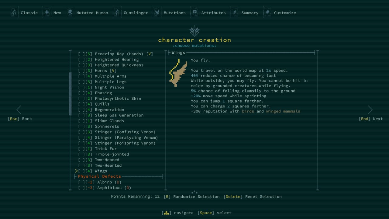 Caves of Qud – игра в жанре рогалик с необычной смесью стилей, таких как: фэнтези (обычные мечи и луки как оружие убийств, сочетаются с магией и дивными существами), пост-апокалипсиса и фантастики. Особенностью станет выбор протагониста перед стартом каждого нового сохранения со своими бонусами. Мутант получает безграничный простор для различных модификаций, путём получения изменений в своём ДНК, проще говоря, мутациям, среди которых есть второе сердце, вторая голова, крылья, когти и многое другое. Обычный же человек более мобилен, имеет больший запас очков прокачки для различных атрибутов и добротный начальный сет брони, что делает старт игры за представителя людей более простым.