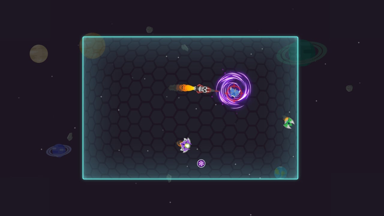 Играйте как в оффлайне, так и режиме мультиплеера до четырех человек. Доступно 3 различные карты и 4 режима игры. Кастомизируйте свой шаттл и отправляйтесь сражаться с противниками в открытом пространстве. Владелец трекера выбирается случайным образом перед стартом матча. Ракета - самый страшный противник в Chase. Постарайтесь любыми способами избежать столкновение со снарядом. Есть различные бонусы и бусты, которые на некоторое время делают вас неуязвимым или позволяют быстрее перемещаться по локации. Самый мощный бонус среди всех - черная дыра, способная устранить сразу всех врагов. Однако воспользоваться этим усилением не так просто.