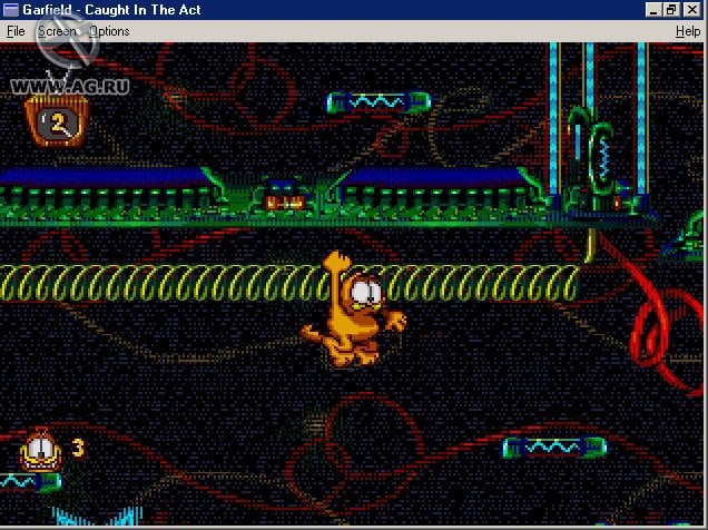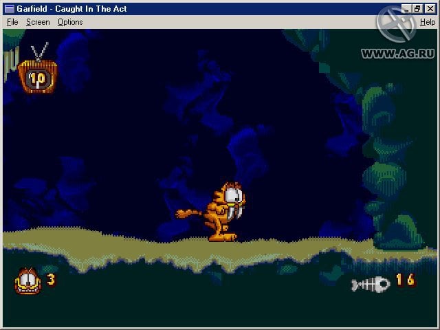Garfield: Caught in the Act - двухмерный платформер по мотивам одноименного мультфильма и серии комиксов про ленивого кота Гарфилда. Игровой процесс представляет собой классический сайдскроллер, в котором вы в роли кота преодолеваете многочисленные препятствия и ловушки. Сражайтесь с врагами и решайте несложные головоломки.