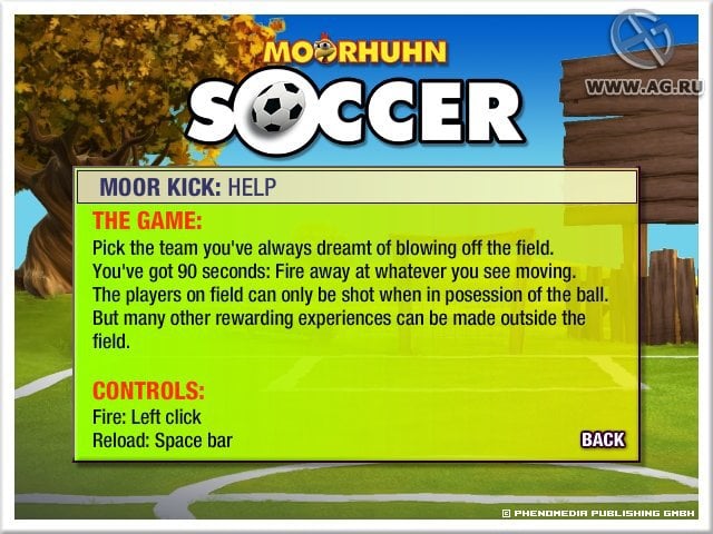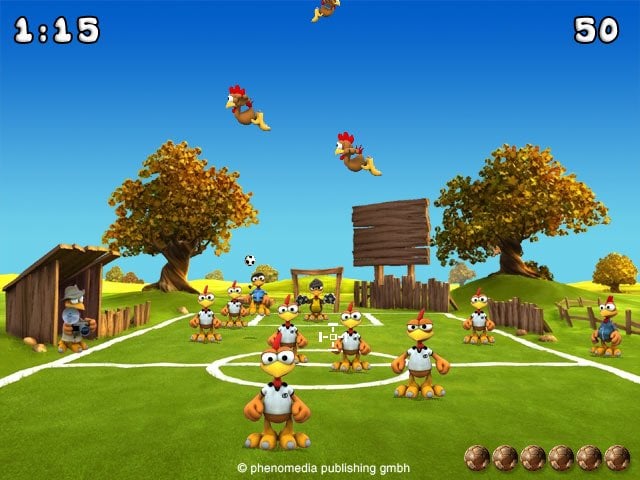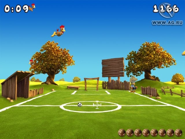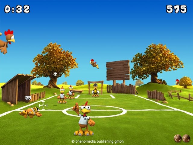 Дело в том, что события Moorhuhn Soccer разворачиваются ровно в тот момент, когда была объявлена футбольная эпидемия. Как говорит Министерство Здравосохранения, она может перерасти в тяжелую форму птичьего гриппа. Но если дело до этого дойдет, то хватайте мощное ружье и отстреливайте зараженных существ.