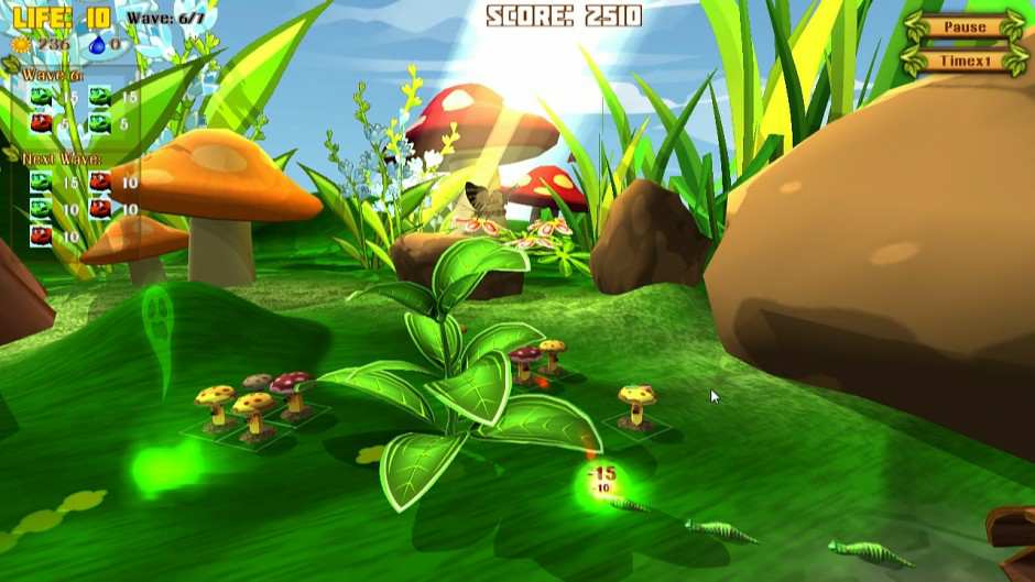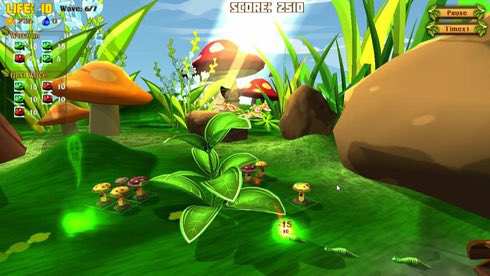 Погрузитесь в настоящую эко-битву за жизнь. Отбивайте атаку прожорливых гусениц, жуков, пауков, грибков и сражайтесь с могущественными муравьями, которые атакуют роем. Перед вами предстанет настоящая битва ядовитых плющей и саранчи, зеленых мух против мухоловок и многое другое. Всего представлено порядка 10 разновидностей врагов и защитных башен. Устанавливайте защитные вышки и другие механизмы, способные защитить от нашествия надоедливых насекомых.