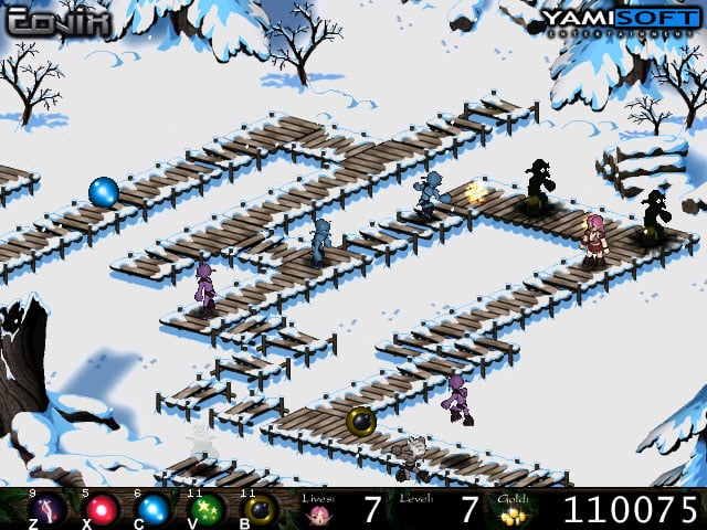 В зависимости от уровня монстров меняется их окрас. Чтобы уничтожить монстров, необходимо применять различные заклинания. Героиня Realm of Hepumia умеет насылать молнии из облаков, пускать синие самонаводящиеся огненные шары, расставлять мины и многое другое. Также среди способностей протагонистки есть временная неуязвимость, которая может не только спасти жизнь эльфийки, но и стать серьезной угрозой для врагов. Применяйте все способности героини, чтобы достичь поставленной цели и отстроить замок.