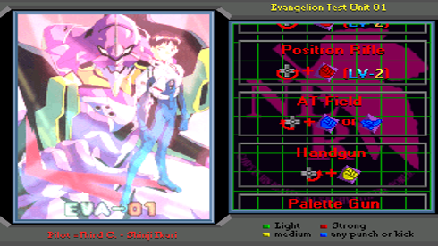 Neon Genesis Evangelion - файтинг по мотивам одноименного аниме. Как и в оригинальном тайтле, в центре истории сражение между евангелионами и ангелами. Несмотря на то, что игра выполнена в полноценном трехмерном режиме, большую часть времени камера располагается сбоку, имитируя классические двухмерные файтинги.