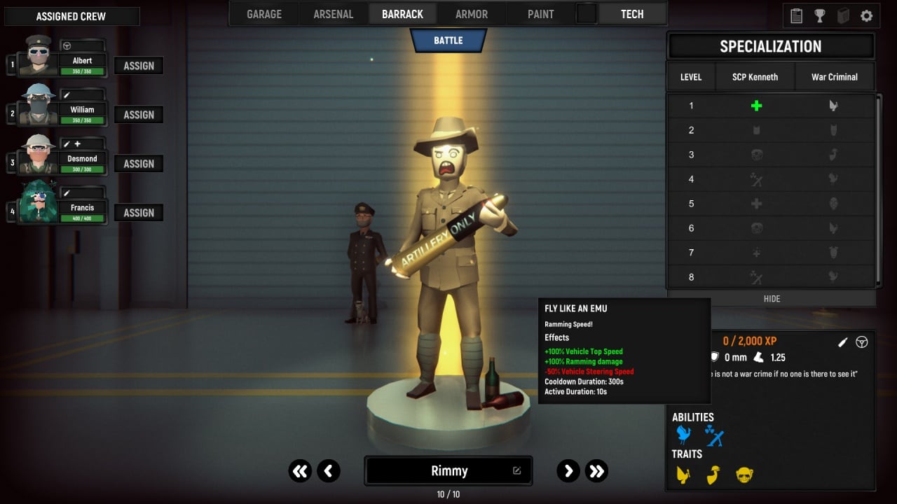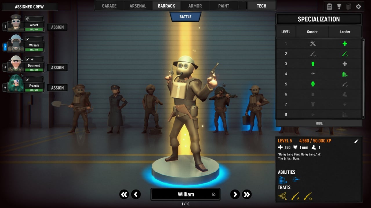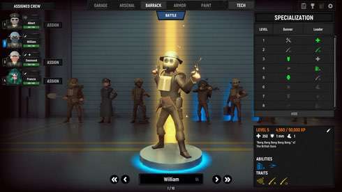 Главной особенностью игрового процесса является полная кастомизация бронированной гусеничной техники, которая стала широко использоваться в года Первой Мировой войны для обеспечения поддержки пехоты в позиционных столкновениях с противниками из-за небольшой скорости передвижения, страдающая из-за громадного веса оборудования. Геймеру доступна настройка внешнего вида, формы корпуса, выбор количества стволов, башен и членов экипажа, находящегося внутри и управляющего каждый своим устройством. Они обладают различными перками для улучшения личных характеристик или всех окружающих.