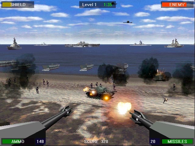 Beachhead 2000 – аркадный шутер с видом от первого лица, в котором игроку необходимо отвечать только за прицеливание и ведение огня. Передвижение по полю битвы не представляется возможным из-за того, что виртуальный протеже располагается за стационарными орудиями, стреляя в разных уровнях из зенитных установок, пулемётов, ракетомётов и так далее. Казуальное управление сделано таковым специально для охвата большей аудитории.