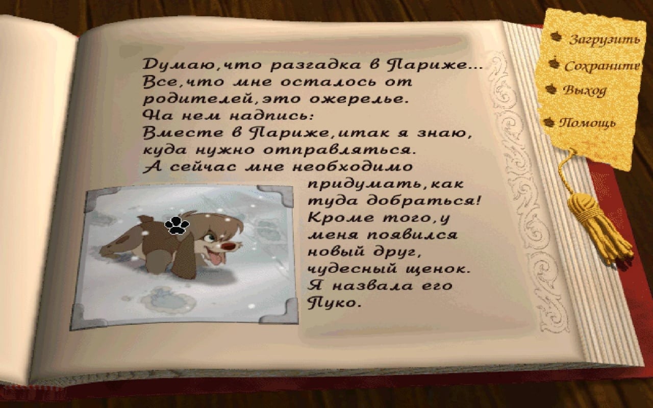 Игра Anastasia: Adventures with Pooka and Bartok сделана по мотивам детского мультфильма "Анастасия" Дона Блута. Здесь мы управляем не девушкой-протагонистом из полнометражной ленты, а её псом Пушком. Его сопровождает летучая мышь Барток. Этот персонаж активно комментирует происходящие события (порой делая это едко) и дает советы. Также он всегда объясняет суть небольших заданий. Сама героиня тоже встречается, то только на картинках в книге. Её закадровый голос зачитывает дневник.