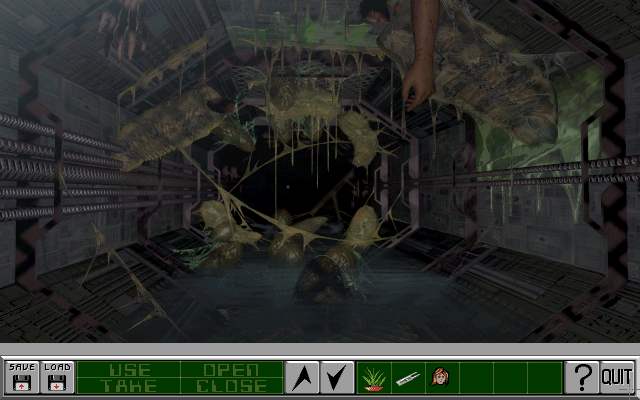 Alien Virus – это квест с видом от первого лица. Протагонист перемещается по локациям между практически статичными экранами. Вращать камерой и поворачиваться нельзя. Большую часть времени в данной игре нужно бродить по станции и заниматься пиксель-хантингом. Загадки тоже встречаются, но их не так много. Также тут можно общаться с неписями. Во время бесед с ними всплывает диалоговое окно с выбором тем. Свободного изучения локаций как такового нет. Главный персонаж в основном идет только вперед и попадает в строго определенные места. У героя есть инвентарь (он отображает всего 6 позиций, поэтому его нужно проматывать) и разные гаджеты. Например: прибор, способный менять размеры предметов, или лампа, что отгоняет расплодившуюся повсюду инопланетную живность, которая обожает темноту и поедание людей. В этой игре можно легко умереть, однако она позволяет часто сохраняться и загружаться.