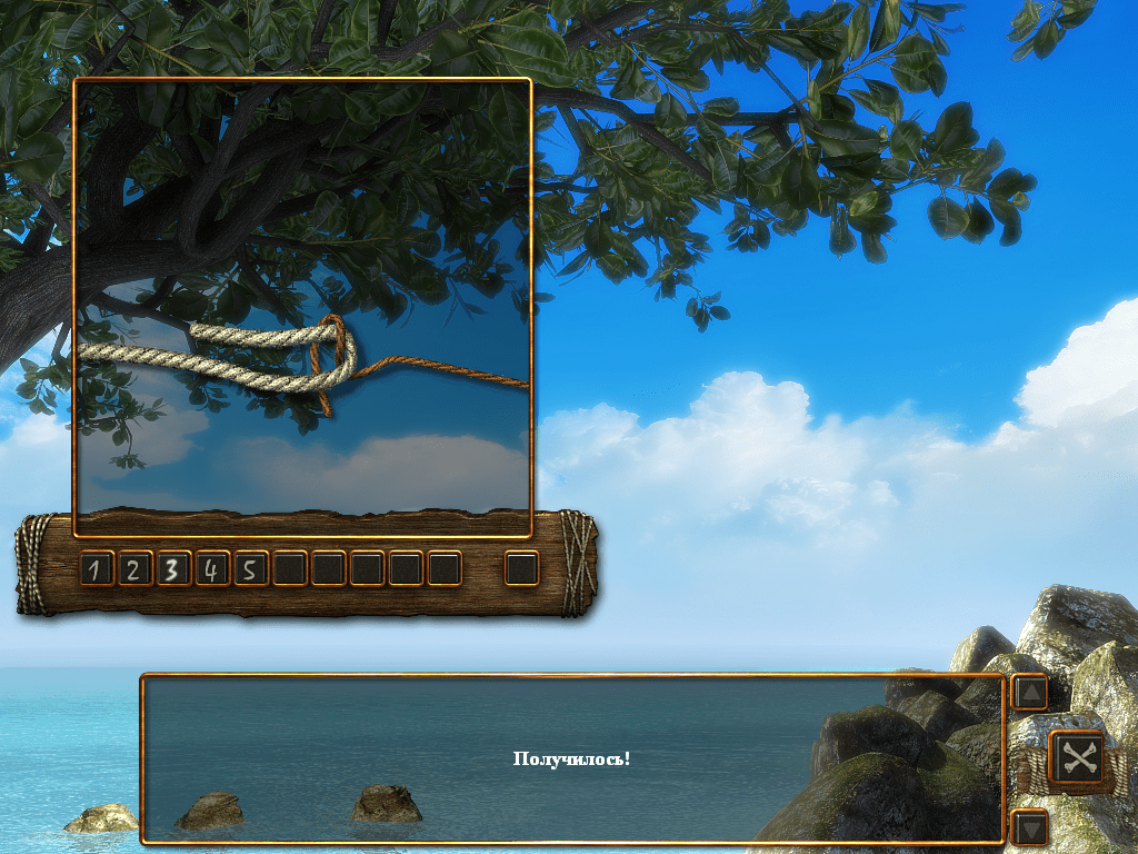 Destination: Treasure Island может понравиться любителям пиратской тематики. Это квест с видом от первого лица. Камеру можно свободно поворачивать на 360 градусов. Персонаж мгновенно перемещается между экранами. Модель главного героя показывается только во время заставок и общения с NPC. Диалогов и монологов здесь много. У протагониста есть инвентарь, куда он складывает предметы, необходимые для решения загадок. Вещи можно разбирать, собирать и даже крафтить. Среди головоломок порой встречаются многоступенчатые пазлы.