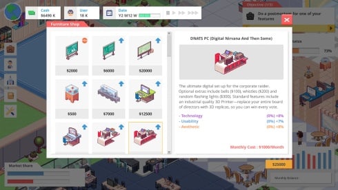Startup Panic RUS v 3.15 (52858) Новая версия Полная версия Последняя Дата выхода 20 янв. 2022 Разработчик Algo.Rocks Жанр Симуляторы, Стратегии, Инди Смешанные на основе 205 обзоров в Steam 55% Обновлено 26 января 2025, 08:19 Список изменений Startup Panic рассказывает о главном герое, который работал на компанию, но на его замену взяли другую работницу. Теперь он устроился к нам на работу и готов выполнять поручения. Перед началом необходимо выбрать страну и пол сотрудника. Придется заняться технологическими разработками, которые связаны напрямую с онлайн-сферой. Взяв под контроль программиста, предстоит развивать офис и быть достойным конкурентом на IT-рынке. В проекте существует множество функций, которые нужно будет разрабатывать, тратя на это денежные ресурсы и время. У каждого нанятого рабочего будут свои характеристики со шкалой: мотивация, технологичность, удобство, эстетика, маркетинг. В профиле компании будут располагаться следующие показатели: наличные, стоимость стартапа, количество сотрудников, капитал, ежемесячный отчет и другое.В начале игры выдается небольшая комната, в которой есть шкаф, кровать и рабочее место. Необходимо развивать проекты, следить за показателями, чтобы не уйти в минус. Работникам в Стартап Паник необходим отдых, иначе работы нормальной не будет. Потребуется следить за лидерами рынка, принимая стратегические решения. Есть возможность выбрать уровень сложности: легкий, средний и тяжелый. Вверху указано число и скорость прокрутки. Каждый новый апгрейд требует определенного количества программистов. Придется улучшать следующие функции и получать с них доход: Лендинг – первая страница сайта, где посетители узнают о нашем продукте. Регистрация – создания учетных записей на веб-сайте. Текстовая реклама – размещение рекламных иконок и заработок с этого. Страница профиля и темы – указание всех своих данных, добавление друзей и комментарии. Секретный чат – зашифрованные сообщения. Магазин стикеров – добавление картинок в мессенджер, за которые онлайн-пользователи будут платить. Обзоры игр – индустрия, где можно получать больший доход. Аналитика – понимание целевой аудитории. Видеохостинг – внедрение видеоматериала и рекламы. Скачать торрент Скриншоты Показать больше Видео из игры Скачать Startup Panic Тип релиза Лицензия GOG (Таблетка: Не требуется) Версия v 3.15 (52858) (Полная) Последняя Размер 292 МБ Интерфейс Русский Озвучка Английская Установка: Примечание Демо-версия Скачать .torrent торрент файл Скачать БЕЗ торрента прямая ссылка через uTorria Альтернативные раздачи Торренты Пиратка (Таблетка: Не требуется) v Build 8324675 242 МБ Скачать Прямые ссылки GOG версия (Без DRM) v 3.15 291 МБ Показать Системные требования ОС: Windows 7, 8, 10 (64 бита) Процессор: 2GHz Оперативная память: 2 ГБ Видеокарта: Intel HD 3000 Место на диске: 1 ГБ Программирование, Управление ресурсами, Менеджмент, Тайм-менеджмент, Экономика, Расслабляющая, Казуальная, Юмор, Игры в 2D, Изометрия, Милая, Протагонистка, Пиксельная графика, Кастомизация персонажа, Для всей семьи, Idle-игра