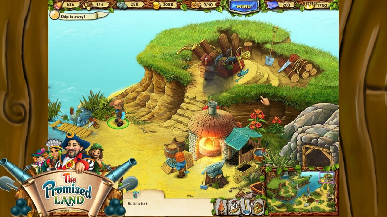 The Promised Land предлагает спокойный и медитативный геймплей, где нельзя проиграть. Игровой процесс напоминает тайтлы серии The Settlers. Здесь тоже надо управлять поселенцами и отстраивать деревню на острове. Присутствует возможность создавать производственные цепочки и логистику, проводить исследования. Также можно строить и улучшать здания, заниматься сельским хозяйством, создавать товары. Постепенно маленький населенный пункт превращается в город. Помимо мирной жизни есть и морские баталии. Они сделаны в форме мини-игры, где выстрелом из пушки нужно сбить всех пиратов на вражеском корабле.