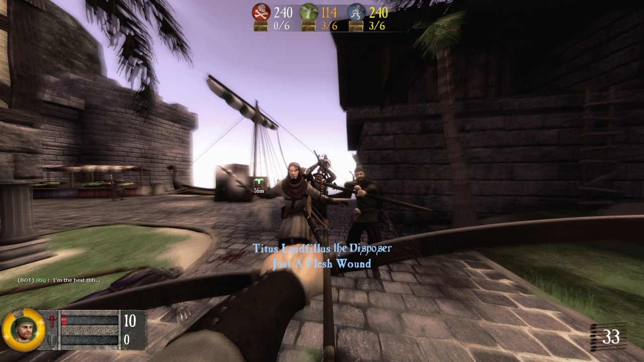 Pirates, Vikings, and Knights 2 RUS v Beta 2.0 Новая версия Полная версия Последняя Дата выхода 12 фев. 2010 Разработчик Octoshark Studios Жанр Экшены, Инди, Шутеры Очень положительные на основе 87 обзоров в Steam 85% Обновлено 26 января 2025, 08:39 Список изменений Pirates, Vikings, and Knights 2 – многопользовательский экшен, делящий участников на три стороны: Пираты, Викинги и Рыцари. Им предстоит бороться за власть, господство и золото, убивая соперников и занимая контрольные точки на территории. Для уничтожения противников каждая фракция имеет уникальные способы, как применение пороховых бочек, пользование стрелковым оружием, копьями, мечами или другими предметами.Боевая система включает множество простых и комплексных механик. Игрок способен атаковать прямыми или боковыми ударами, блокировать, уворачиваться, манипулировать камерой, замахиваться и выполнять другие действия. Каждый персонаж обладает шкалой здоровья. Разные атаки наносят отличающееся число урона. Показатель брони позволяет потерять меньше основного здоровья. Как только защита закончится, то вражеские атаки начнут наносить намного больше урона.Классы 3 сторон в Pirates, Vikings, and Knights II: Пираты имеют разбойника, самого быстрого героя, пользующегося саблей и кремнёвыми пистолетами. Капитан атакует ручным попугаем и мушкетоном, а также обладает увеличенным количеством ХП. Снайпер применяет дальнобойное оружие и небольшой кинжал. Викинги состоят из Берсеркера, Хускерла, Бонди и Хускерла. Каждый их них живуч, пользуются двуручными и метательными копьями, большими топорами, плоским луком и щитами. Рыцари – средневековый тип юнитов с тяжелым воином, лучником и гвардейцем. Латные доспехи, короткие мечи, длинные луки и щиты – основные отличия, сравнивая с остальными фракциями. Скачать торрент Скриншоты Показать больше Видео из игры Скачать Pirates, Vikings, and Knights 2 Тип релиза Пиратка (Таблетка: Вшита) Версия v Beta 2.0 (Полная) Последняя Размер 1.63 ГБ Интерфейс Русский Озвучка Отсутствует Скачать .torrent торрент файл Скачать БЕЗ торрента прямая ссылка через uTorria Системные требования ОС: Windows XP, Vista, 7, 8, 10 Процессор: 1.7 GHz Оперативная память: 512 МБ Видеокарта: Совместимая с DirectX 8.1 Место на диске: 10 МБ Средневековье, Пираты, Сражения на мечах, Шутер от первого лица, Смешная, От первого лица, Слэшер, Историческая, Мемы