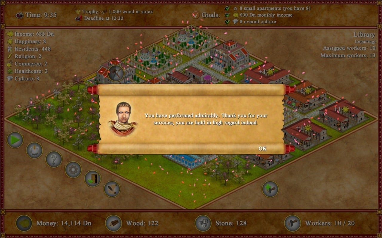 Romopolis / Ромополис RUS v Build 17107467 Новая версия Полная версия Последняя Дата выхода 18 мая. 2016 Разработчик Lonely Troops Жанр Симуляторы, Инди, Стратегии В основном положительные на основе 99 обзоров в Steam 80% Обновлено 26 января 2025, 08:44 Список изменений Romopolis / Ромополис – стратегия, в которой игрока нанимают в качестве строителя-архитектора, позволив обустроить районы древнего города Рим. Чтобы все жители остались счастливы, нужно следить за их показателями и прислушиваться к их мнению. За успешно выполненную работу, можно получать не только деньги, но и славу. Что позволит строить более качественные дома и укреплять старые постройки. Кампания состоит из 24 уровней, за завершения которых нужно добиться определенной цели, поставленной перед началом. В Ромополисе есть несколько видов задач: повышение показателя счастья, накопление необходимой суммы денег или повышение налогов. Уровни представляют собой поле из 25 клеток, доступных для строительства. Некоторых из них засажены лесом. Его придется срубить для получения древесины. Встречаются залежи руды, после добычи которой освобождается место под застройку, а игрок получает ценные материалы. Чтобы расчистить местность, придется заплатить работникам. Города различаются между собой качеством жизни и статусом горожан. Для улучшения их духа, нужно преподнести им комфортные условия проживания. К примеру, простые жители для счастья просят храм, а те, кто живет в больших мегаполисах, хотят заполучить все удобства, такие как канализация или парковую зону. При неудачной планировке, показатели падают. Здания требуют дополнительного ухода и ремонта, разрушаясь со временем. Скачать торрент Скриншоты Показать больше Видео из игры Скачать БЕЗ торрента прямая ссылка через uTorria Альтернативные раздачи Прямые ссылки Облачные хранилища v Build 17107467 115 МБ Показать Системные требования ОС: Windows XP, Vista, 7, 8, 10 Процессор: 1.0 GHz Оперативная память: 1 ГБ Видеокарта: 128 МБ Место на диске: 195 МБ Казуальная, Симулятор колонии, Градостроение, Тайм-менеджмент, Изометрия, Менеджмент, Строительство