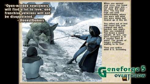 Geneforge 5: Overthrow – ролевая приключенческая игра, использующая изометрический вид на мир под названием Шейперс, окружающий главных героев и прочих персонажей. Данная часть франшизы является заключительным путешествием в вымышленную вселенную. Громадное количество сюжетных линий, как основных, так и побочных, развиваются в течении прохождения игроком однопользовательской кампании на несколько десятков часов. Геймер свободно решает, какие локации ему посещать, какие задания принимать и выполнять, с какими фракциями поддерживать дружеские отношения или, наоборот, делать всё для ухудшения их положения.