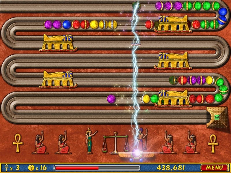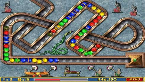 Геймплей Luxor можно описать, как три-в-ряд. Вам необходимо выстраивать в одну цепочку шары одинакового цвета. При этом вы управляете платформой, передвигаясь от одного края локации к другому. Уничтожайте движущиеся шары. Чтобы это сделать, необходимо выстроить в ряд от трех и больше одинаковых сфер. Ваша задача состоит в том, чтобы добраться до вершины пирамиды.