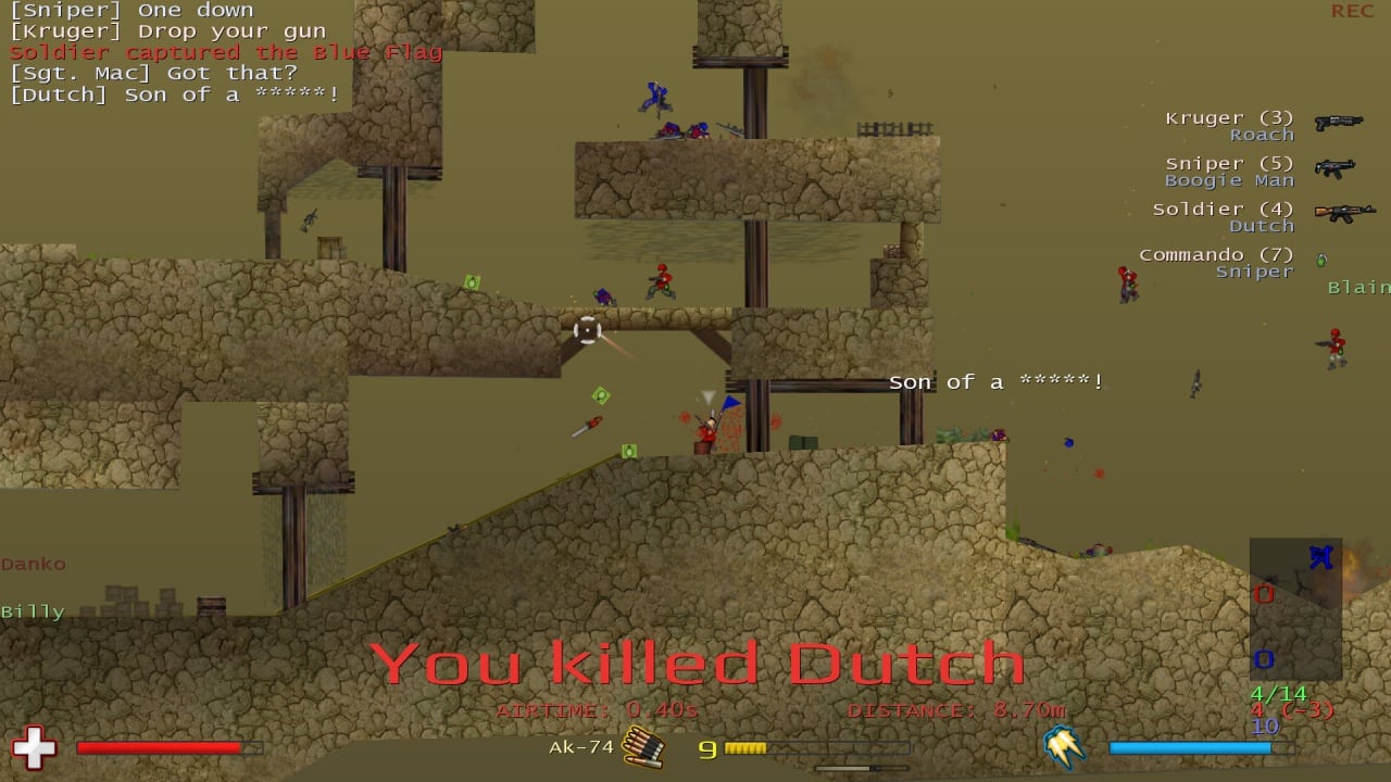 Soldat - двухмерный сайдскроллер, черпающий вдохновение из таких разных проектов, как Worms и Counter-Strike. В игре необходимо управлять солдатом. Позволяется полностью кастомизировать своего персонажа Режимы позволяют играть как в одиночку, так и в кооперативе. Однако лучше всего механики раскрываются в режиме мультиплеера.