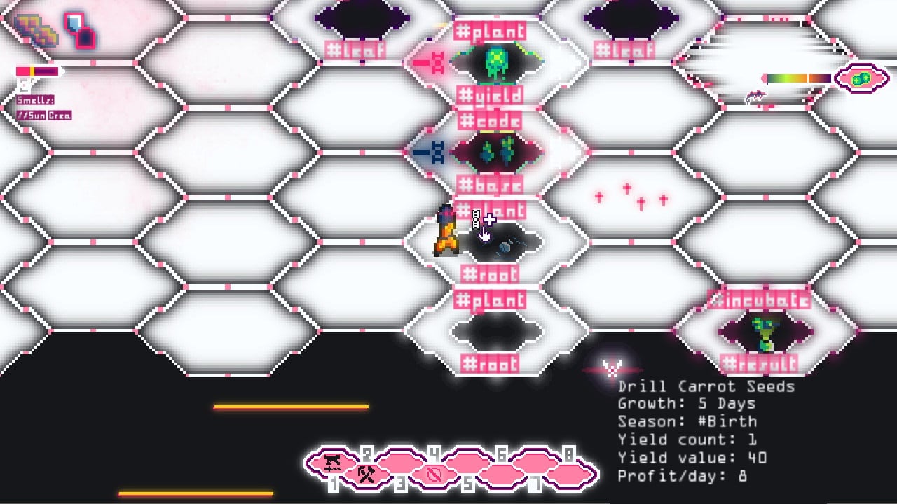 Вы играете за космического ветеринара, цель которого восстановить жизнь на земле. Выращивайте гиперпространственный урожай, разрабатывайте лекарства, исследуйте дикие просторы и многое другое. Игровой процесс позволяет вырастить новую жизнь на коже космического кита. Уничтожайте поврежденные клетки и углубляйтесь в анатомию мира. Выращивайте, создавайте и модифицируйте посевы, различные инструменты, снаряжение, оружие и т.д. Прокачивайте свое тело при помощи био-инженерных симбионтов. Используя мультитул, очищайте участки от раковых заражений, минеральных корок и т.д. На шестигранника выращивайте растения и многие лечебные травы. Система базируется на пермакультуре - реальной концепции сельскохозяйственного дела.Особенности Hyperspace Harvest: