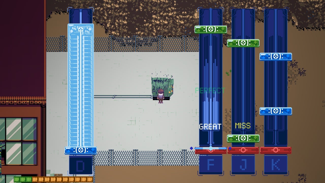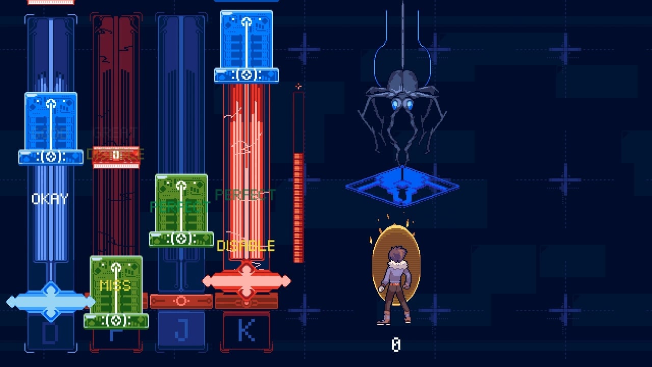 Боевая система представлена в виде музыкальной мини-игры, в которой самым важным является умение поддерживать ритм и нажимать клавиши вовремя. Геймеру предоставляется право выбора уровня сложности в зависимости от степени собственной подготовленности к такому типу геймплея. В ходе прохождения, игрок будет находить оборудование, дающее усиления способностей протагониста, позволяющих упростить задачу сражения с мобами под контролем искусственного интеллекта.