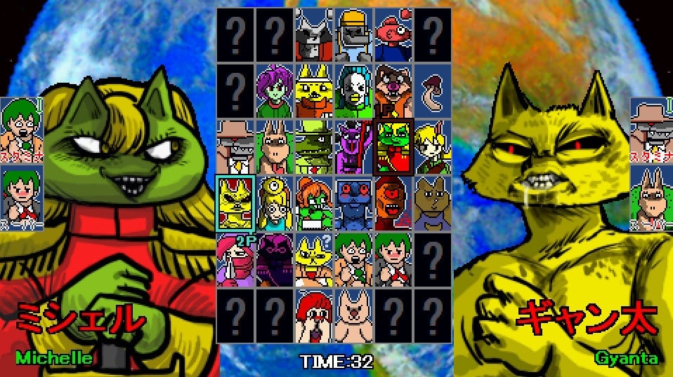 Ultra Fight Da! Kyanta 2 – двумерный файтинг, созданный в стиле старой школы с пиксельной графикой и современными элементами, добавленными в игровой процесс. Бешеный темп и простое управление – основные аспекты данного проекта. При помощи пары кнопок игроку предстоит сражаться в 2D-битвах, уничтожая многообразных соперников и вымышленных существ. Геймплей включает 2 режима: одиночный и кооперативный. Пользователи способны драться между собой, либо проходить уровни вместе, контролируя разных подопечных. Во время динамичных боев предстоит успевать уклоняться и атаковать соперников. Постепенно открывается доступ к разнообразным персонажам с собственными способностями и внешним видом.