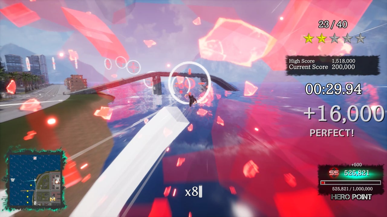 Геймплей включает 2 квеста-испытания: полет и вызов. В них юзеру понадобится уничтожать все объекты в челленджах, либо пролетать через определенные преграды. Во Flight Challenge предстоит достигнуть контрольной точки за отведенное время, перелетев через весь город, чтобы повысить собственный уровень. Постепенно прокачка предоставляет улучшения к способностям или открывает умения. Бои с боссами представлены в виде динамичного сражения в воздухе. Если проиграть схватку, то оппонент разнесет весь город в щепки.