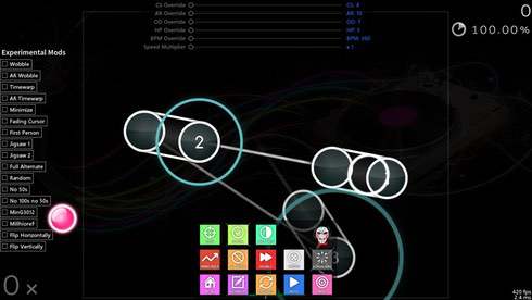 Имеется возможность регулировки темпа полёта "битов" – маленьких геометрических фигур, что требуется разбивать для успешного продвижения по этапу – а также, их размера, шансов на ошибку, и количества очков здоровья безымянного виртуального протеже. Также, пользователю предлагаются и другие типы кастомизации собственного геймплея, заключающиеся, например, в добавлении дополнительных сложностей, вроде тряски экрана, передвижения игровой карты, инверсия движений и так далее. Имеется бесконечный режим, целью которого становится набрать как можно больше очков.
