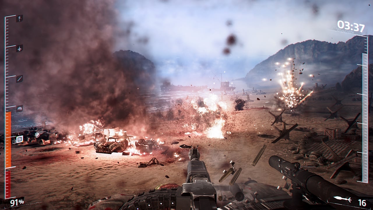 Все представленные миссии происходят на территории Европы, что подвергается полномасштабным нападениям террористической группировки исламистов со стороны Средиземного моря. Помимо стационарного пулемёта в распоряжении главного героя имеется гранатомёт, помогающий устранить противников на небольшой области, и возможность вызова поддержки с воздуха. Прокачка выполнена путём получения очков опыта, что можно конвертировать в апгрейд огнестрельного оружия, брони и количества здоровья.