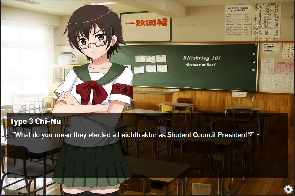 Протагонист, мечтавший всю свою жизнь получше узнать бронетехнику, имеет уникальную возможность получить знания и приятно провести время в компании молодых красоток, каждая из которых обладает особым характером и предпочтениями, что необходимо учитывать для достижения желаемого прогресса в общении. Вариативность обеспечивается возможностью выбирать реплики виртуального протеже, что влияет на дальнейшие события. Всего в игре имеется 6 сюжетных любовных линий, игрок самостоятельно решает, расположение какой женщины он желает добиться.