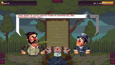Заготовленные локации выступают полигоном для шуток, ведь каждому конфликту предшествует какая-либо спорная ситуация, отображаемая на экране. Динамичная окружающая среда подбрасывает участникам спора возможные реплики. Геймеру предстоит собирать обидные предложения из списка слов и словосочетаний, что предлагает сама игра, пытаясь максимально задеть соперника, доведя его до инфаркта. Проект поддерживает таблицу лидеров, в которой отображаются лучшие умельцы убыть своего врага с помощью острого словца.