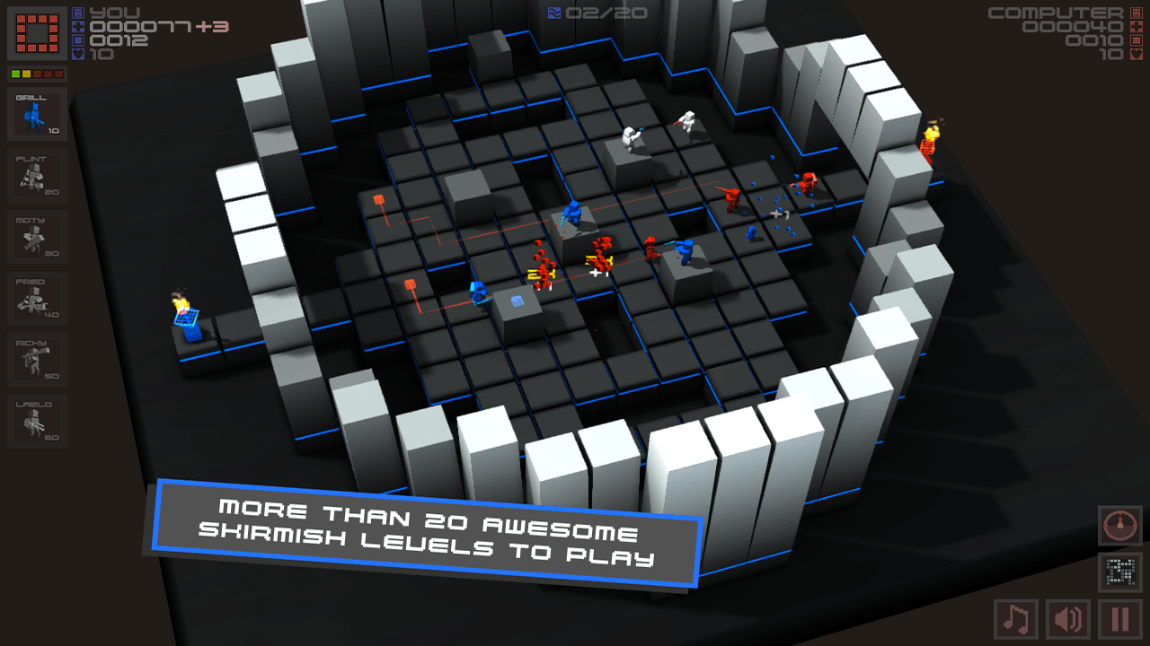 Воспользуйтесь собственными кубическими людьми, чтобы защищать территорию от других куболюдей и устранять их. Сюжетная кампания имеет множество поворотов и сюрпризов. Проходите последовательные уровни, участвуйте в хардкорных испытаниях, либо отбивайтесь от бесчисленного количества волн соперников, пытаясь набрать наибольшее количество баллов. Здесь нет статичных башен, вы контролируете перемещающимися куболюдьми. Особенности Cubemen: