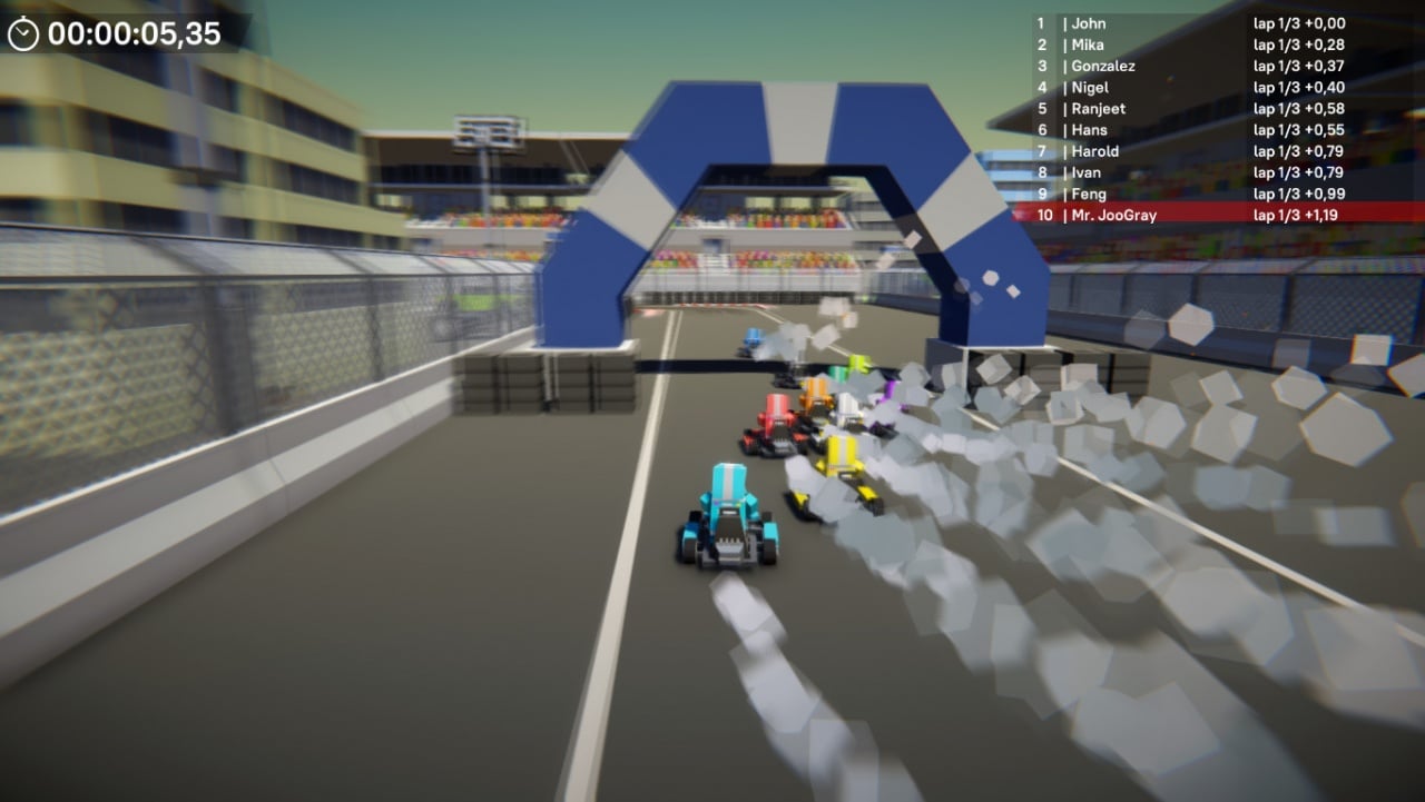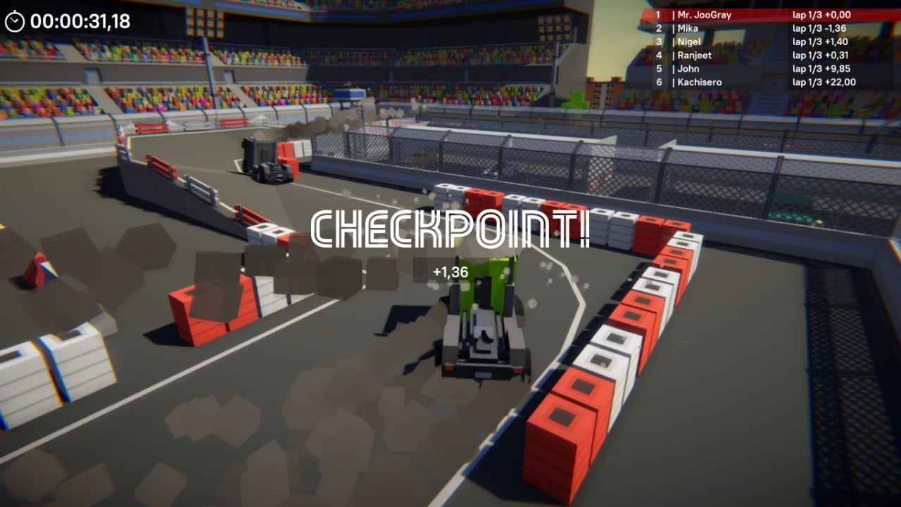 В игре доступно 16 автомобилей: от миниатюрных квадроциклов до мощных грузовиков. При этом в гонках нет ограничений по виду транспортных средств, то создает настоящий хаос на дорогах. На компактных машинах проще маневрировать, а крупные позволяют не замечать соперников и ехать напролом. Всего доступно 15 карт, разделенных на три тематики: улицы города, грунтовой трек и асфальтированная гоночная трасса. Они дополняются трамплинами и резкими спусками.