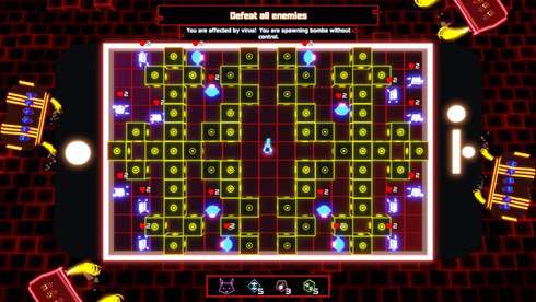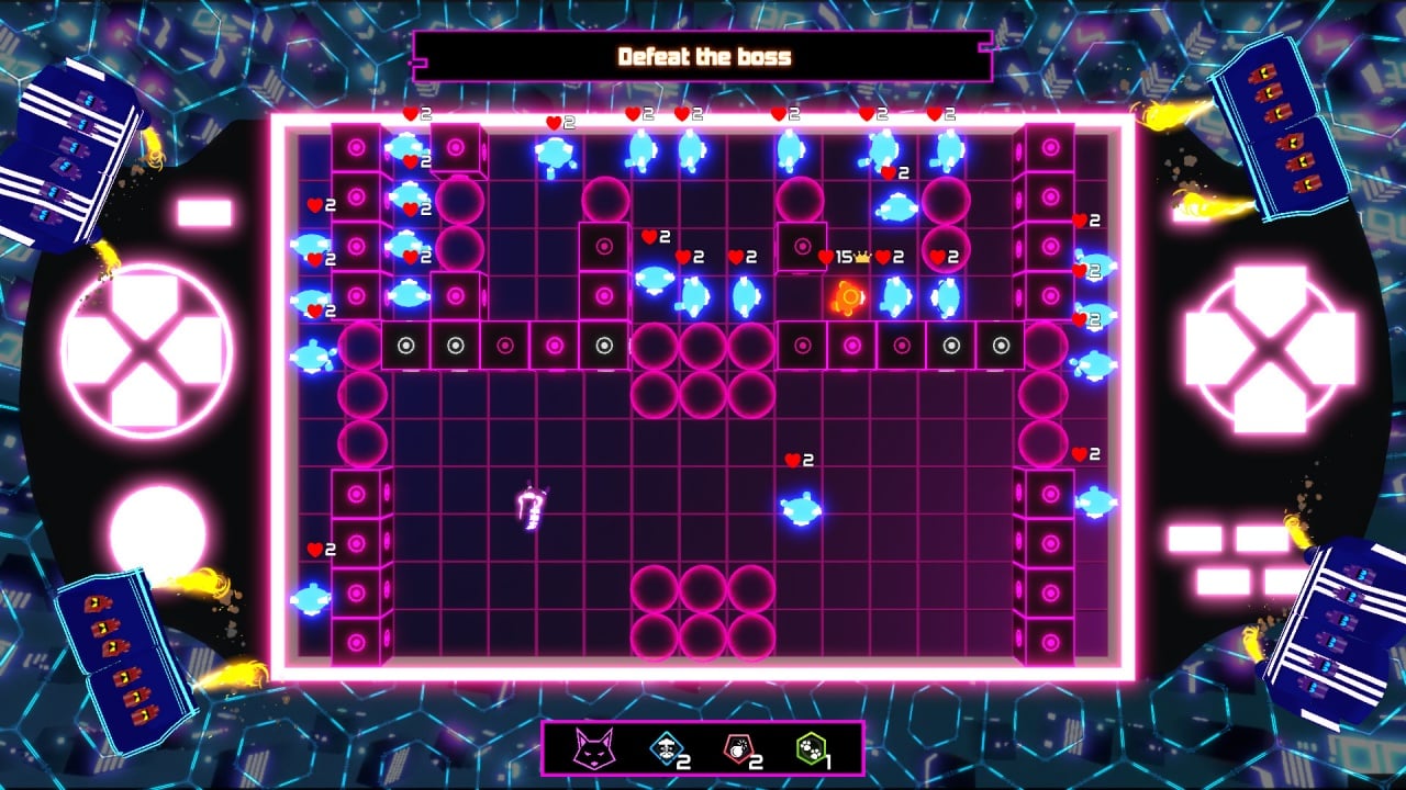 Для поединков доступны 20 арен. Геймплей разнообразный, благодаря чему игра не покажется монотонной. Для нападения используются лазерные бомбы. Часть блоков может взорваться не сразу или вызвать цепную реакцию. Некоторые элементы разрушить нельзя, но можно при помощи взрыва их переместить в другое место. На выбор предлагается несколько типов андроидов. Они отличаются уровнем здоровья и умениями. Например, некоторые способны облетать блоки, а другие способны создавать новых киборгов.