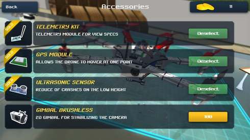 Вся модернизация проводится за деньги. Необходимые для этого монетки зарабатываются в гоночных ивентах и режиме свободного полета. Можно проходить контрольные точки на время, соревноваться с ботами, демонстрировать трюки, а также изучать местность. Для исследования доступно 4 карты: ангар, поселок, деревня в ночное время суток и горная местность.