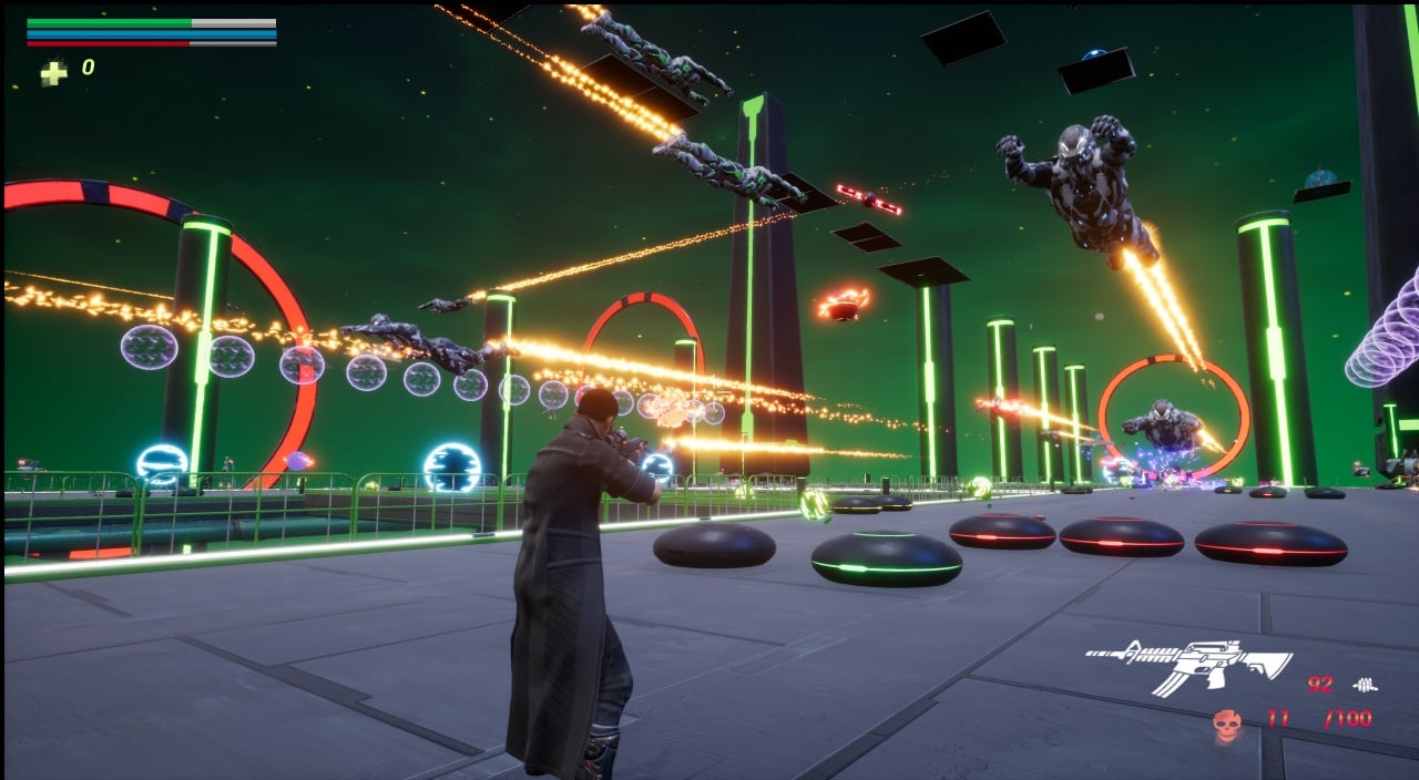 Основа геймплея Strike the Striker Z – это бег и стрельба. С каждой новой ступенью, приближающей персонажа к заветной свободе, сложность прохождения заметно возрастает. Стадионы становятся все просторнее, наводняясь большим количеством роботов. Среднестатистический боевой юнит в два раза выше человеческого роста, но встречаются и гигантские боссы. Чем дальше в лес, тем толще и выше киборги, а кроме них будут дроиды, фантастические твари, за чьи фотографии СМИ отвалило бы чемодан денег, и ловушки, наносящие урон как подопытному, так и ордам врагов.