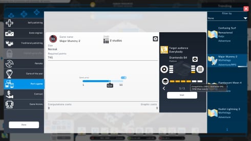 City Game Studio: a tycoon about game dev RUS v Build 22565972 Новая версия Полная версия Последняя в альт. раздачах Дата выхода 24 авг. 2021 Разработчик Binogure Studio Жанр Симуляторы, Стратегии, Инди, Приключения Очень положительные на основе 1672 обзоров в Steam 92% Обновлено 27 мая 2025, 11:58 Список изменений Игровой процесс City Game Studio начинается в гараже. Главный герой решает стать основателем компании и разрабатывать видеоигры. События игры разворачиваются в январе 1975 года, когда стали появляться первые виртуальные приключения и аркады. Центральному персонажу быстро удается продать большую часть разработанных первых проектов.Первые заработанные средства разрешают протагонисту переехать в лучшее место. С этого начинается прохождение пользователя. Игроку потребуется собственноручно предпринимать решения, имеющие большое влияние на дальнейшую судьбу подопечного. Нанимая сотрудников, они помогут улучшить будущие проекты. Художники смогут лучше нарисовать персонажей и территории, маркетологи знают, как рекламировать новинки, а тестеры узнают обо всех недочетах и ошибках альфа и демо версий. Даже самые лучшие и качественные игры могут не получить кучу фанатов. Издатели помогут решить этот вопрос, но заберут большую часть прибыли.Геймер способен публиковать издательские контракты или обращаться к разным студиям, чтобы они помогли выпустить проекты за приличную плату. В геймплее открыт доступ к разработке и аренде игровых движков. Юзер сможет покупать или арендовать здание и офисы для работы. Конкурентские игры взламываются и помогают черпать идеи для собственных выпусков. Выполняя контракты, они будут обучать сотрудников. Для успешных продаж геймер сможет организовывать маркетинговые компании или участвовать в игровых выставках. Скачать торрент Скриншоты Показать больше Видео из игры Скачать City Game Studio: a tycoon about game dev Тип релиза Лицензия GOG (Таблетка: Не требуется) Версия v 1.26.2 Размер 553.6 МБ Интерфейс Русский Озвучка Отсутствует Установка: Примечание Более актуальная версия: v Build 22565972находится в блоке - Альтернативные раздачи. Скачать .torrent торрент файл Скачать БЕЗ торрента прямая ссылка через uTorria Альтернативные раздачи Торренты Пиратка (Таблетка: Не требуется) v Build 22281491 272 МБ Скачать Прямые ссылки GOG версия (Без DRM) v v1.26.2 294 МБ Показать Облачные хранилища v Build 22565972 280 МБ Показать Системные требования ОС: Windows 7, 8, 10 Процессор: Intel Core i3 Оперативная память: 2 ГБ Видеокарта: Intel HD 3000 Место на диске: 1 ГБ Менеджмент, Экономика, Капитализм, Программирование, Игры в 2D, Иммерсивный симулятор, Изометрия, Казуальная, Реиграбельность, Симулятор жизни, Песочница, Строительство, GOG игры