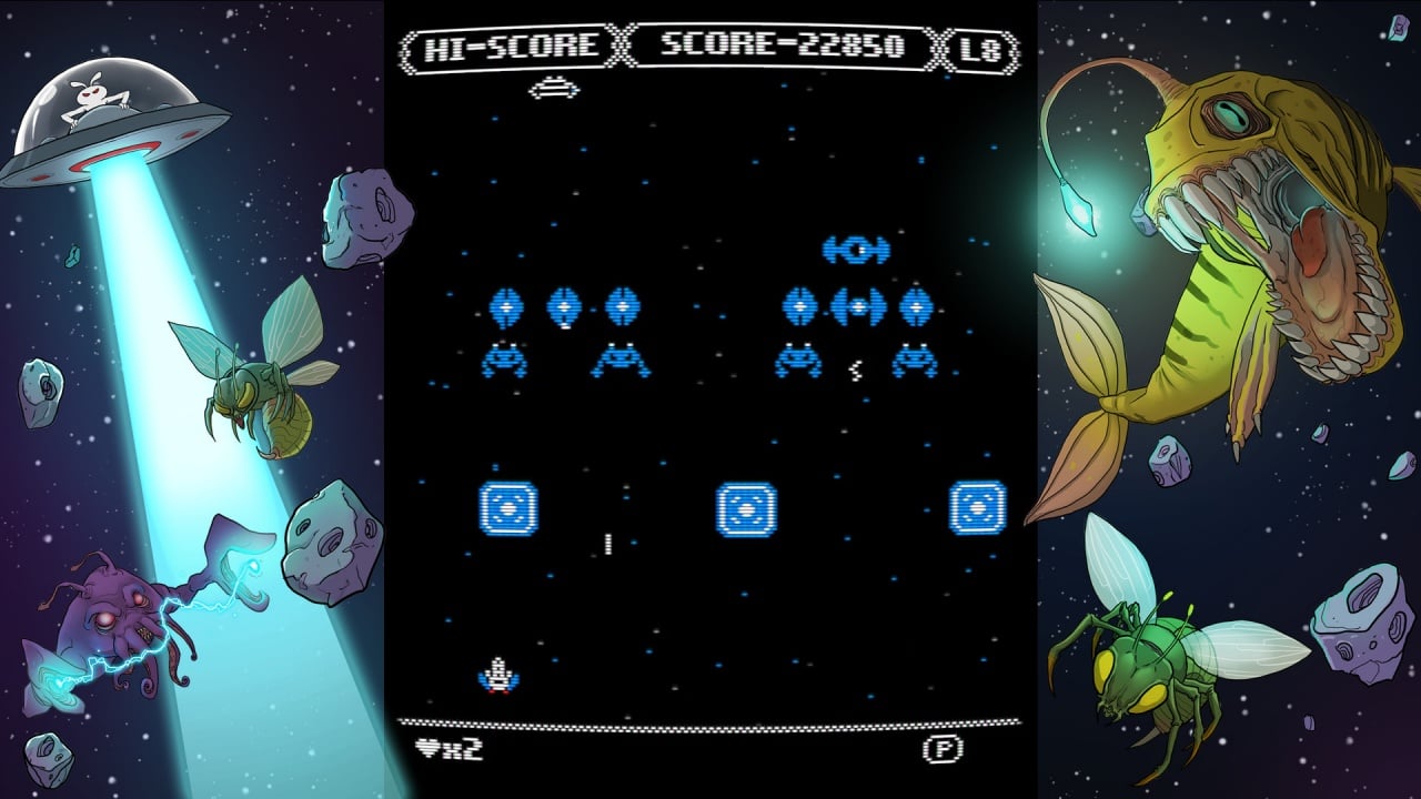 Разработчики попытались разнообразить геймплей. Каждый уровень здесь отличается от предыдущего. На одном надо сражаться с гигантским пауком, на другом целиться мешают летающие объекты, на третьем приходится уклоняться от астероидов и т. п. Вдобавок в этом тайте есть битвы с боссами. Космический истребитель способен выдержать попадание всего двух вражеских снарядов. Если потратить все жизни, то придется начинать всю секцию заново. После победы над главарями прогресс сохраняется.
