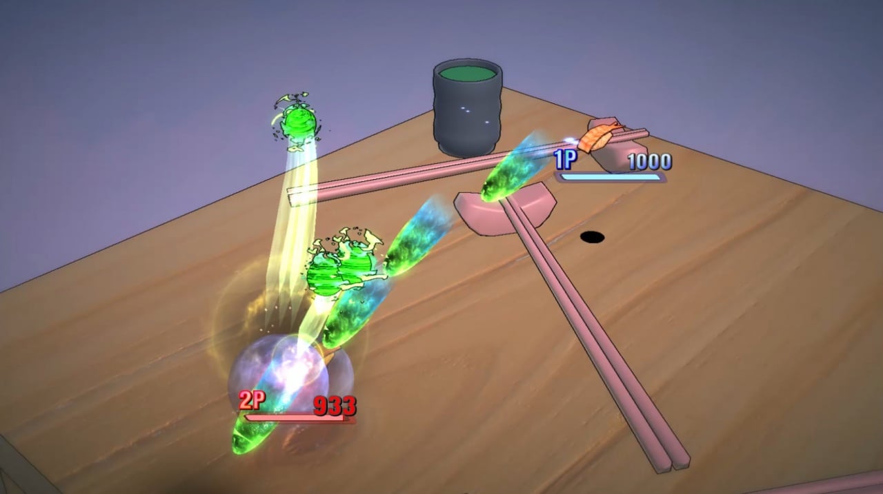 SushiParty2 относится к экшенам. Это необычный и юмористический проект. В нем нужно участвовать в дуэлях. У игры изометрический вид, но с динамичной камерой. Она сама меняет масштаб в зависимости от расстояния между соперниками.