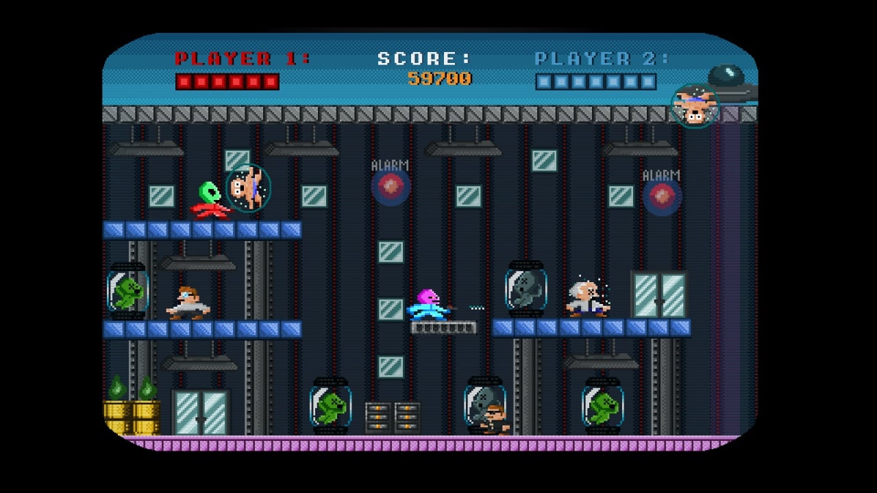 Это аркадный ретро-платформер. У него двухмерная пиксельная графика. Камера расположена сбоку. Доступно всего 4 уровня: строительная площадка, гостиница, военная база, лаборатория. Каждый из этапов умещается в пределах одного экрана. Чужие могут бегать влево и вправо, прыгать и стрелять. Для завершения локации нужно поймать на ней каждого человека. Важно при этом не падать в ловушки. Можно проходить тайтл вдвоем, сидя вместе за одним ПК. Геймплей сопровождается аутентичной музыкой и старыми звуками. Присутствует система достижений.