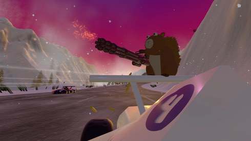 Можно выбрать любую трассу, настроить количество кругов и определить уровень сложности компьютерных оппонентов. Игровой процесс напоминает гоночные тайтлы про Марию. Гонщики пытаются занять первое место любыми способами. Можно агрессивно водить и сталкивать соперников на обочину. По трекам разбросаны ящики. Из них в случайном порядке выпадают бонусы: ракета, пулемет, броня, ускорение и т. п. Оружие исчезает после того, как патроны закончатся. Машины тут не уничтожаются, а просто вылетают за пределы дорожного полотна. Здесь позволяют переключать камеру и свободно вращать её. Среди ракурсов есть вид из кабины.
