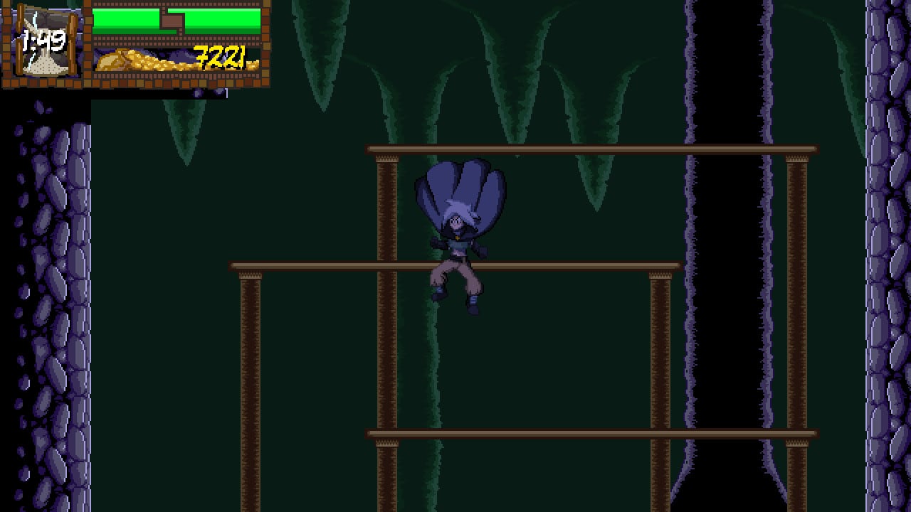 Воительница очень быстро передвигается влево и вправо, высоко прыгает, скользит по земле во время подкатов и шустро дерется. Она может атаковать недругов клинками, отбивать их снаряды, бросаться метательными ножами и копьями. Можно подбросить противника в воздух и добивать его в полете. Или метнуть пику, запрыгнуть на неё сверху и перелететь таким образом через пропасть. Девушку постоянно подгоняет вперед таймер. Если время закончится, то геймплей сильно усложнится. Простые враги и боссы тогда станут намного сильнее. У инди-проекта высокая реиграбельность за счет различных модификаторов. Можно усиливать супостатов и превращать игру в аркаду со стартовым количеством жизней. Помимо этого имеются 2 дополнительных режима: пляжный волейбол и отдельные битвы с главарями.