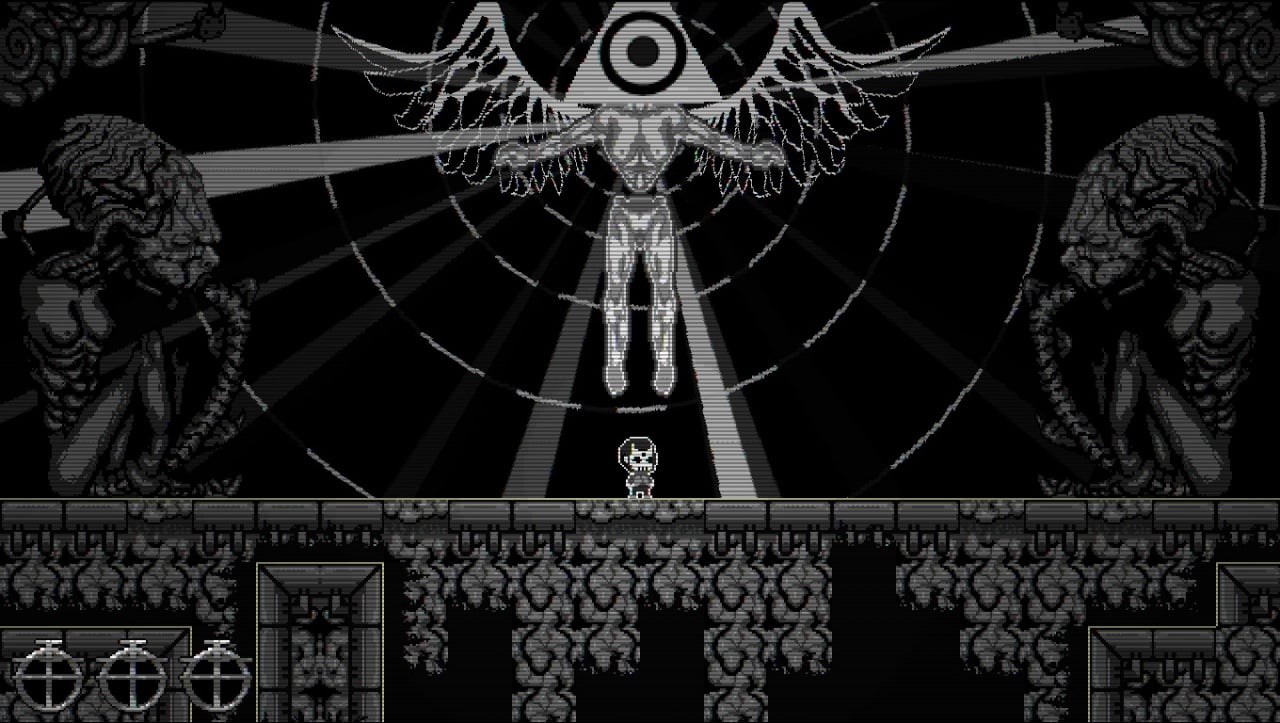 Каждый уголок напичкан ловушками, которые активируются при наступлении на плиту, либо срабатывают заранее. Например, на начальном этапе, герой пробегает через створки, сразу после чего проход закрывается, а в полу активируется механизм, убивающий сразу после того, как на него наступить. В другой, более сложной ситуации, по скрипту в погоню за юнитом устремляются летающие демоны, от которых нужно убежать, ведь при касании они наносят урон, а отбиваться от них нечем. Порой, ситуацию усложняют и демонические изображения, появляющиеся на фоне. Они размывают общую картинку, заставляя сильнее концентрироваться на своих действиях. Есть и лазеры, которые остаются деактивированными, пока персонаж не двигается, но как только он начинает движение, они сразу же активируются и могут причинять вред. Некоторые места в TAMASHII будут ну уж очень хардкорными, но система автосохранения позволит начинать повторные попытки из удобного места, не переигрывая локации целиком.