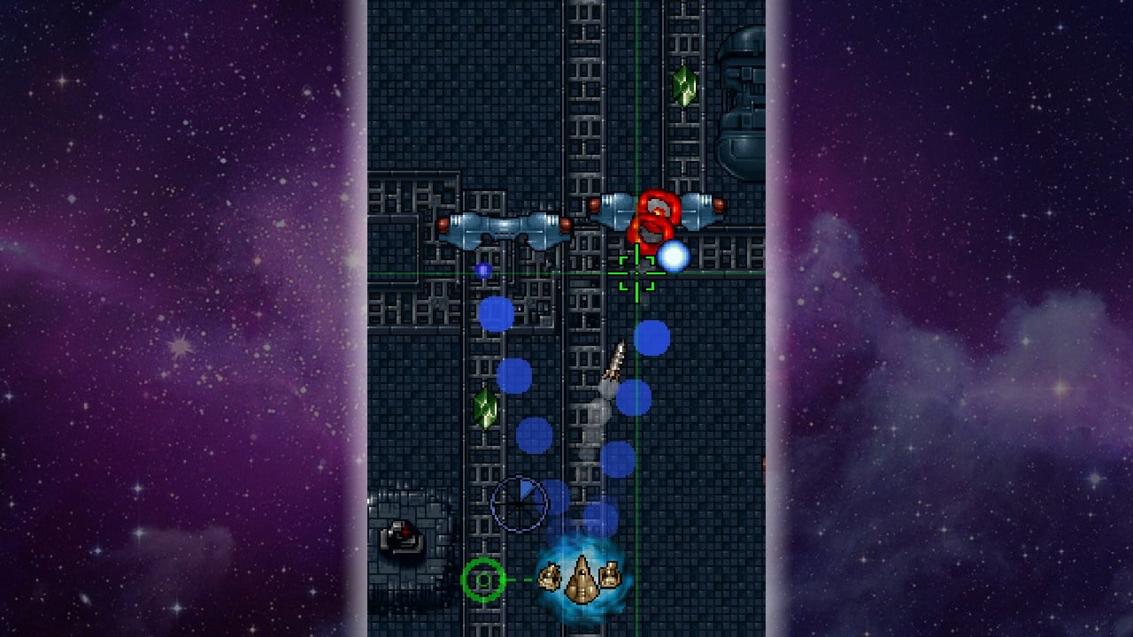 Чтобы пройти этап, достаточно просто долететь до его конца и не умереть по пути. Выбор уровней осуществляется на глобальной карте. Однако юзера не пустят дальше по сюжету, пока он не убьет определенное количество конкретных врагов. Поэтому можно возвращаться в ранее виденные локации и фармить фраги. Из убитых недругов выпадают пушки. Всего тут 9 разновидностей оружия. При этом могут появляться стволы с различными модификациями, дающими бонус к скорости стрельбы, наносимому урону и точности. Так что два одинаковых с виду лазера могут различаться между собой характеристиками. После завершения кампании открывается бесконечный режим.