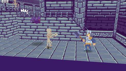 Он может ходить влево и вправо, вверх и вниз, перемещаться по диагонали. Также закованный в латы воин способен прыгать. Главный персонаж вооружен одноручным молотом. Протагонист применяет его в бою против зомби, скелетов, злых рыцарей, летучих мышей, гоблинов слизней и боссов. В целом противники делятся на 2 типа. Одни пытаются ударить человека вблизи, а другие атакуют его издалека. Геймплей состоит из поединков с монстрами, преодоления пропастей и уклонения от ловушек. При этом можно при желании избегать схваток с обычной нежитью. Прокачка здесь отсутствует, а бонусов или каких-то полезных предметов тут тоже нет. Логово повелителя мертвых состоит из палат, залов, башен и других помещений. Герой путешествует по коротким комнатам. Чтобы продвинуться дальше, ему нужно просто найти выход в следующую локацию.