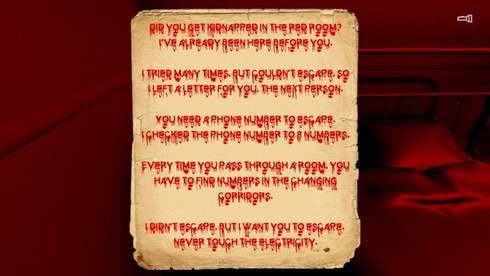 Вам необходимо быть внимательными. Ищите в комнате подсказки, которые помогут вам продвинуться дальше. Всего в Red Room доступно 8 подсказок. Они складываются в 8 знаков, которые похожи на номер мобильного телефона. Попробуйте его ввести, чтобы сбежать из этого проклятого места.