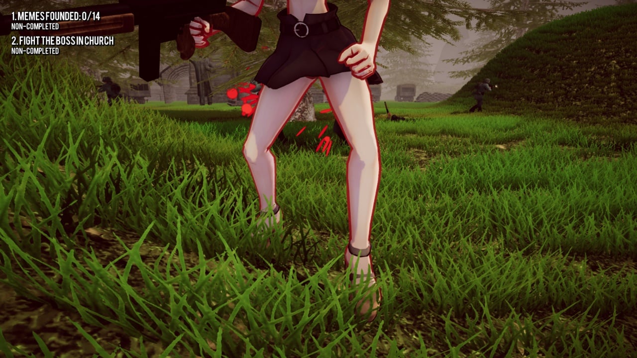 Играйте за полураздетую красотку, которая ловко управляется крупнокалиберными стволами (ох уж эта двусмысленность, правда?). Сражайтесь с многочисленными мобами. Каждый враг в игре представлен уникальным внешним видом и атакует при помощи индивидуальных паттернов. За время прохождения повстречайте призрак коммунизма, пройдите мимо статуи Ленина и убейте священника. Покажите ему веру настоящей монашки!