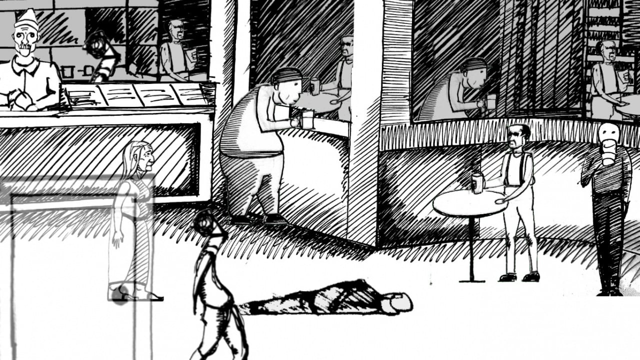 Vasilis в первую очередь выделяется своей черно-белой графикой. Вся визуальная часть была нарисована вручную. Дергающиеся и дрожащие объекты создают довольно мрачную и гнетущую атмосферу. В плане жанра это квест с элементами хоррора. В нем надо исследовать локации, болтать с людьми, выполнять поручения, находить вещи и решать загадки.