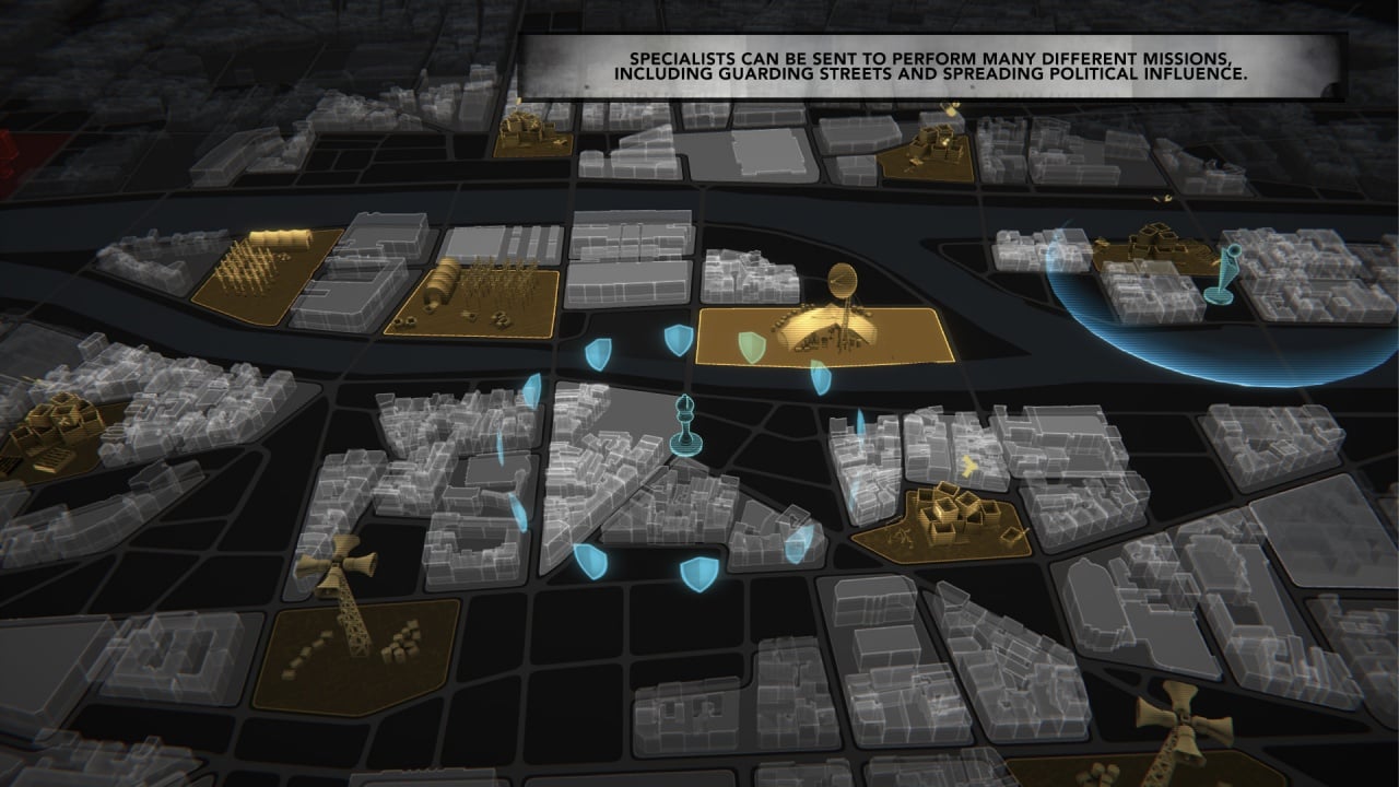 Постоянные изменения в обществе потребуют принятия подходящих законов. Также пользователю часто будут давать непростой выбор, где грань между этикой и выживанием не оставит от себя и следа. Захватывать зоны можно не только боевыми действиями, но и пропагандой. Для этого на вражеские территории нужно отправлять Специалистов. Они смогут убедить жителей сменить власть используя лишь слова и дар убеждения. Ну а если такой маневр не прокатит – придется действовать пулям и пороху. Главное задачей станет полное восстановление спокойной жизни в выбранном городе.
