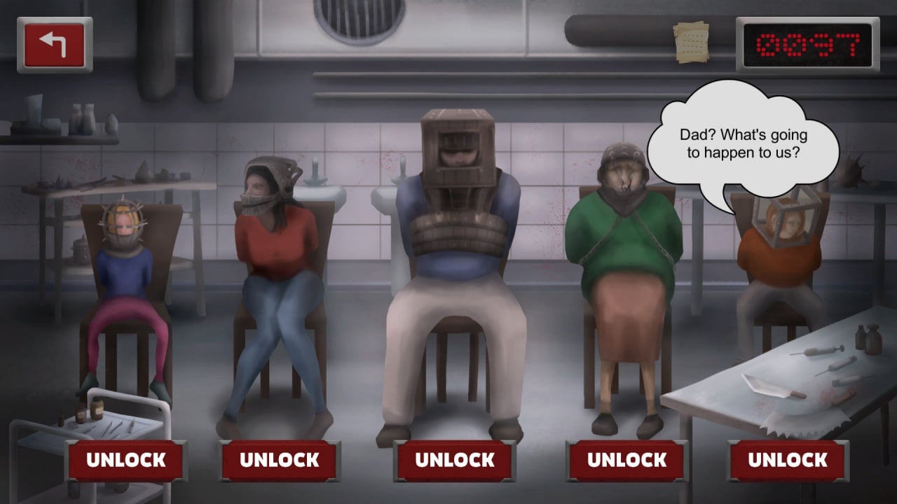 Примечательно, что вы также находитесь в плену у маньяка. Однако он выбрал вас в качестве оппонента. Правила очень просты. Побеждаете - он выдает вам ключ, которым вы можете освободить одного из членов семьи. Таким образом он помогает искупить грехи за себя и свою семью. Не дайте безумцу взять верх и победить. Сделайте все возможное, чтобы справедливость восторжествовала и убийца получил по заслугам!