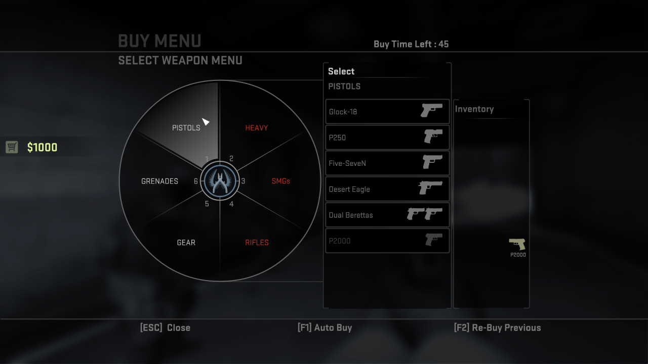 Классический матч включает в себя до 30 раундов, где победой будет выигранный 16 раунд. В начале каждого раунда игрок открывает магазин и покупает нужное ему оружие. Выбор падает на 6 пистолетов, 3 дробовика, 2 пулемета, 5 простых автоматов и 3 штурмовых винтовки. 2 снайперские винтовки, кстати, покупаются в основном опытными игроками. Также в игре можно купить броню, гранаты. Поменять скины — внешний вид модели оружия — тоже можно, если купить или «выбить» после матча.