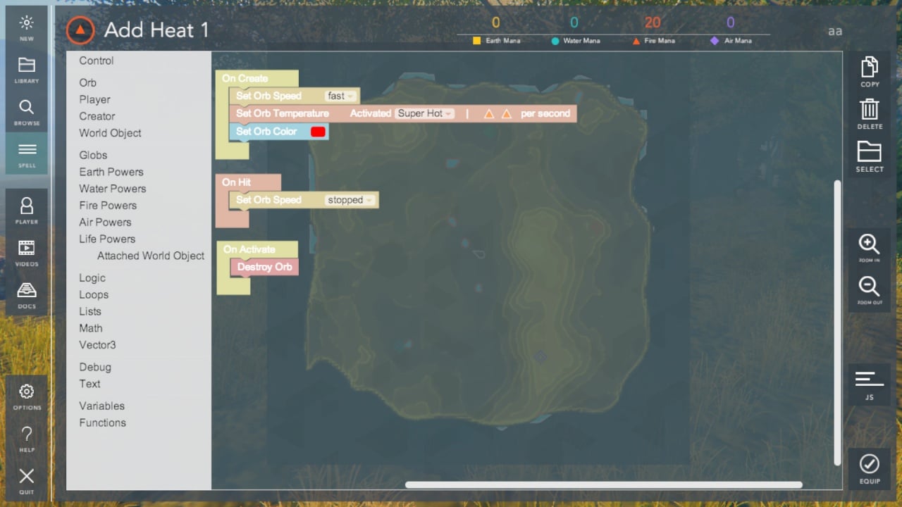 Творите настоящую магию при помощи простого кода! Простой интерфейс позволит вам быстро освоить javacript, внося изменения в игровой процесс и добавляя свои уникальные заклинания. Доступен визуальный редактор Blocky. Вы можете левитировать, быстро перемещаться по карте, зажигать или тушить лесные пожары, высушивать моря, наполнять территорию океаном и создавать силовое поле вокруг себя. Станьте сильнее Гэндальфа, Дамблдора или самого Сарумана!