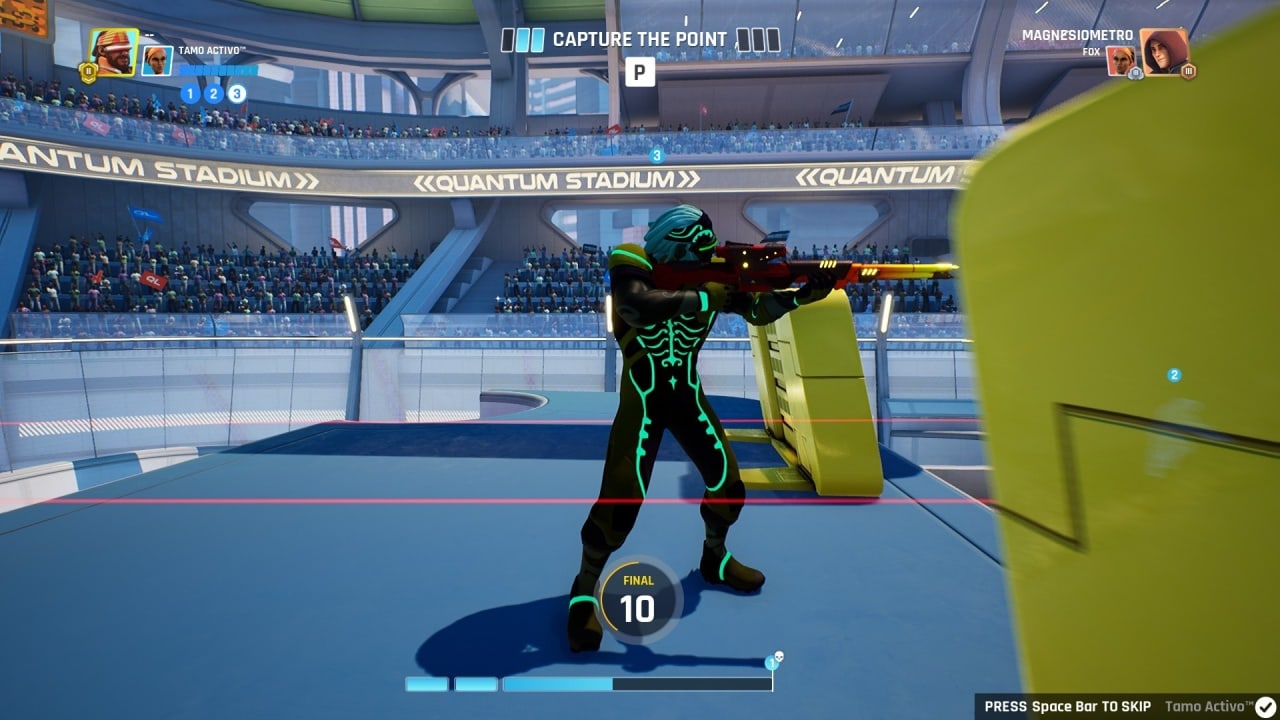Действия игры разворачиваются в альтернативной вселенной. В связи с тем, что технологии ушли далеко вперед, сильно изменился профессиональный спорт. Лучшие стрелки собираются на ежегодное соревнование Quantum League. Сражайтесь с оппонентами, вступая в союз с самим собой. Возрождайтесь и продолжайте борьбу за главный приз. Поднимайтесь в турнирной таблице и станьте суперзвездой экстремального вида спорта. Вам понадобятся скорость, ловкость и точность. Обязательно следует научиться взаимодействовать со своей копией, потому что только слаженная работа и кооперативная сыгранность поможет вам одолеть всех врагов. Особенности игрового процесса: