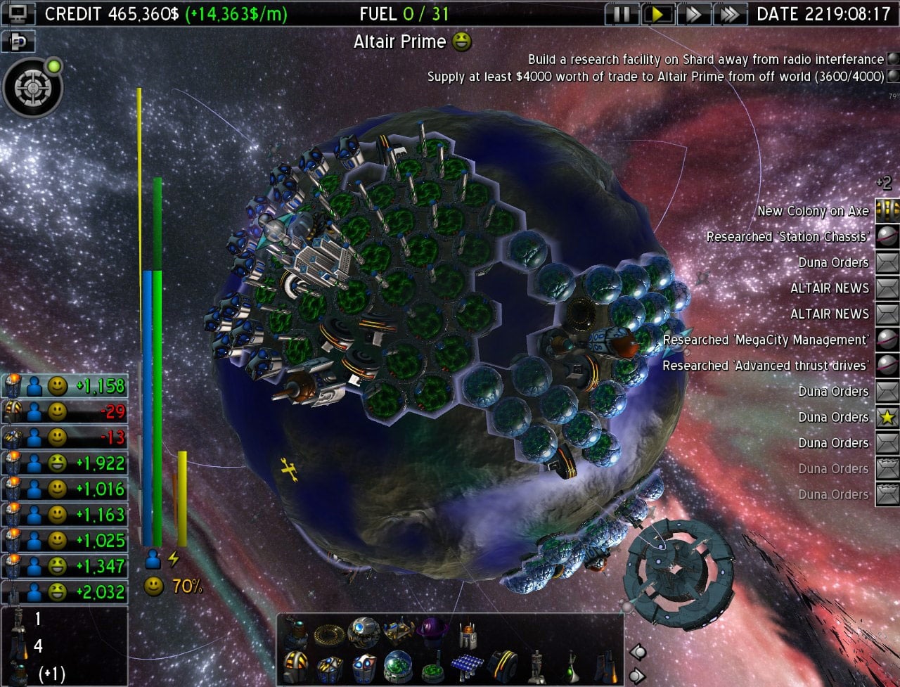Light of Altair v 1.02 Новая версия Полная версия Последняя Дата выхода 4 июн. 2009 Разработчик SaintXi Жанр Стратегии, Инди, Симуляторы Положительные на основе 33 обзоров в Steam 82% Обновлено 26 января 2025, 07:07 Список изменений Light of Altair обладает выраженной сюжетной линией. Геймеру предстоит выращивать колонии. Для этого начальство отправило его в космос и периодически отправляет различные задания. По мере прохождения откроется 16 полноценных миссий. Каждую из них можно пройти повторно, если появится желание. Свобода действий отсутствует. Персонаж будет получать четкие дерективы сверху. К примеру, предстоит построить 5 шахт или удвоить уровень развития компаний. При этом нужно постоянно платить налоги, количество которых неустанно растет. Пользователя будут держать в строгих рамках. Если развитие будет медленным или выйдет за пределы бюджета, то можно лишиться должности или финансирования. Однако с последним не все так печально. Даже при минусовых показателях казны, можно продолжать строительство. Если выстроить верную тактику, то полученная прибыль сможет восстановить экономический баланс. В Свет Альтаира в распоряжении пользователя окажется несколько небольших планет. На их поверхности необходимо выстроить основы цивилизации для дальнейшего процветания. Для удобства, почва разделена на равномерные квадраты. Заняв несколько ячеек, поселение не имеет права на ресурсы, расположенные за их пределами. Со временем территорию можно расширить, увеличивая площадь для добычи пищи и воды. Скачать торрент Скриншоты Показать больше Видео из игры Скачать Light of Altair Тип релиза Лицензия (Таблетка: Присутствует) Версия v 1.02 (Полная) Последняя Размер 656.6 МБ Интерфейс Английский Озвучка Отсутствует Установка: Скачать .torrent торрент файл Скачать БЕЗ торрента прямая ссылка через uTorria Системные требования ОС: Windows XP, 7, 8, 10 Процессор: Pentium 4 1.5GHz or Athlon XP 1500+ Оперативная память: 256 MB Место на диске: 1 ГБ Космос, Научная фантастика, Стратегии в реальном времени